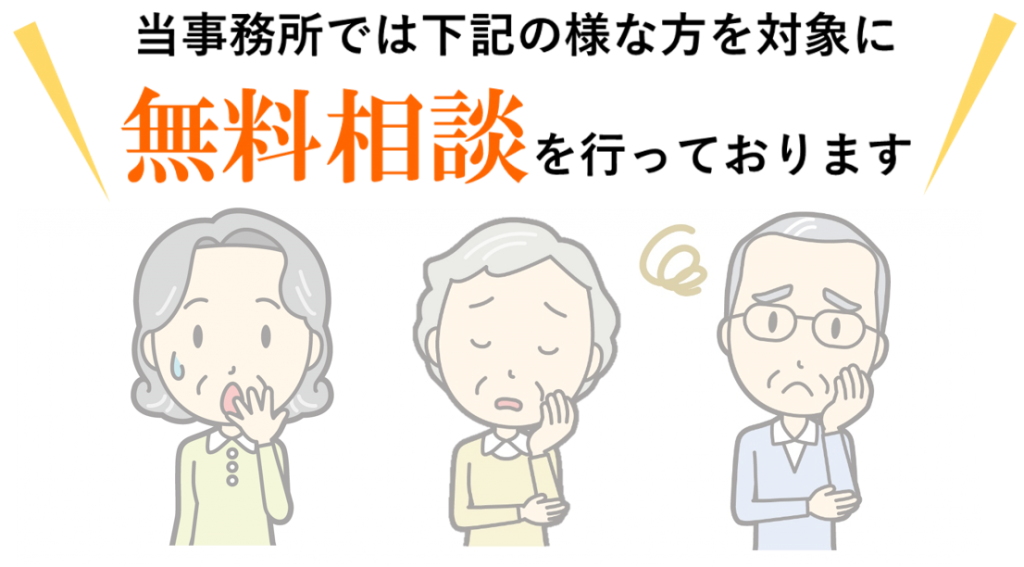 当事務所では相続手続きでお悩みの方が多数いらっしゃるのを見てきてきたからこそ、少しでも力になれるように「無料相談」を実施しております。