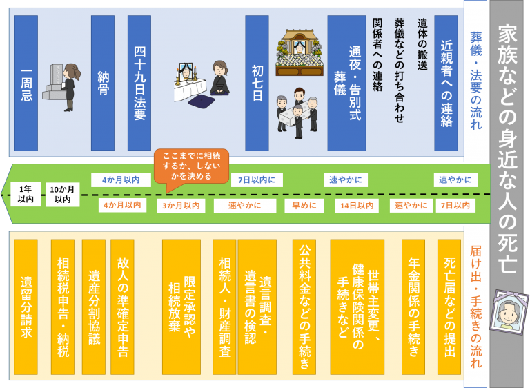 まずは、亡くなった後に必要な手続きの全体像を把握しておきましょう。